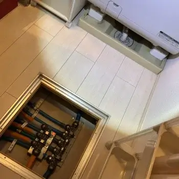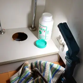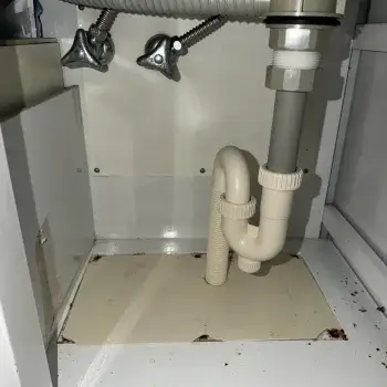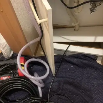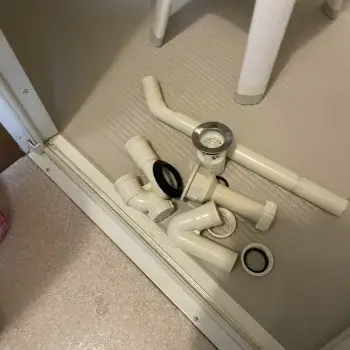 洗面台下の収納に詰め込んだ物が排水パイプにぶつかって、排水ホースが床の管から外れる場合があります。傷んだ場合は交換する必要があります。