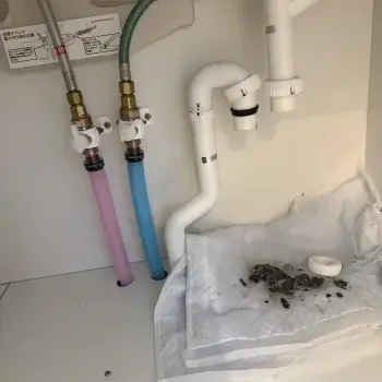 排水パイプと給水管の接合部で緩み