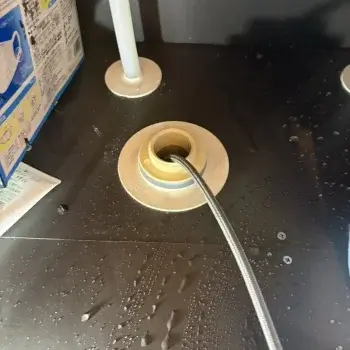 パイプつまりにより排水が逆流して水漏れを起こしている場合は、パイプ内を高圧洗浄することで解消します。