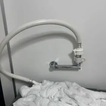 洗面台下の収納に詰め込んだ物が排水パイプにぶつかって、排水ホースが床の管から外れる場合があります。傷んだ場合は交換する必要があります。