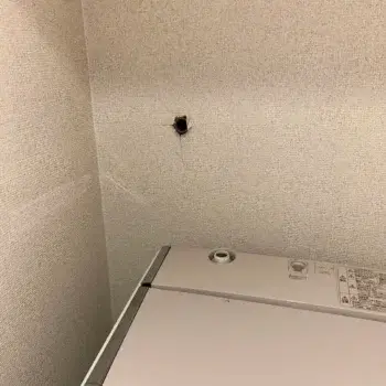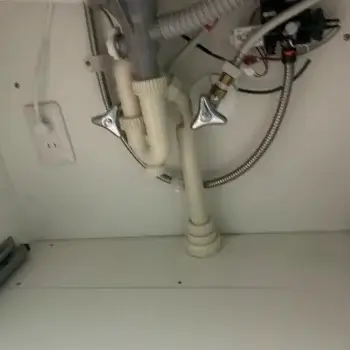 洗面台下の収納に詰め込んだ物が排水パイプにぶつかって、排水ホースが床の管から外れる場合があります。傷んだ場合は交換する必要があります。