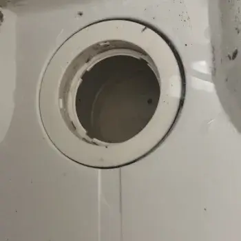 洗面台下の収納に詰め込んだ物が排水パイプにぶつかって、排水ホースが床の管から外れる場合があります。傷んだ場合は交換する必要があります。