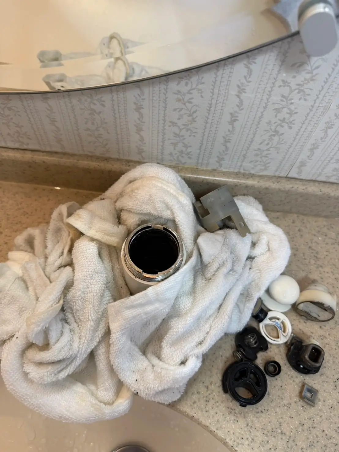 今回は洗面所専門チームとして適合する専用部品をお持ちしていましたので、そのまま交換作業を実施しました。