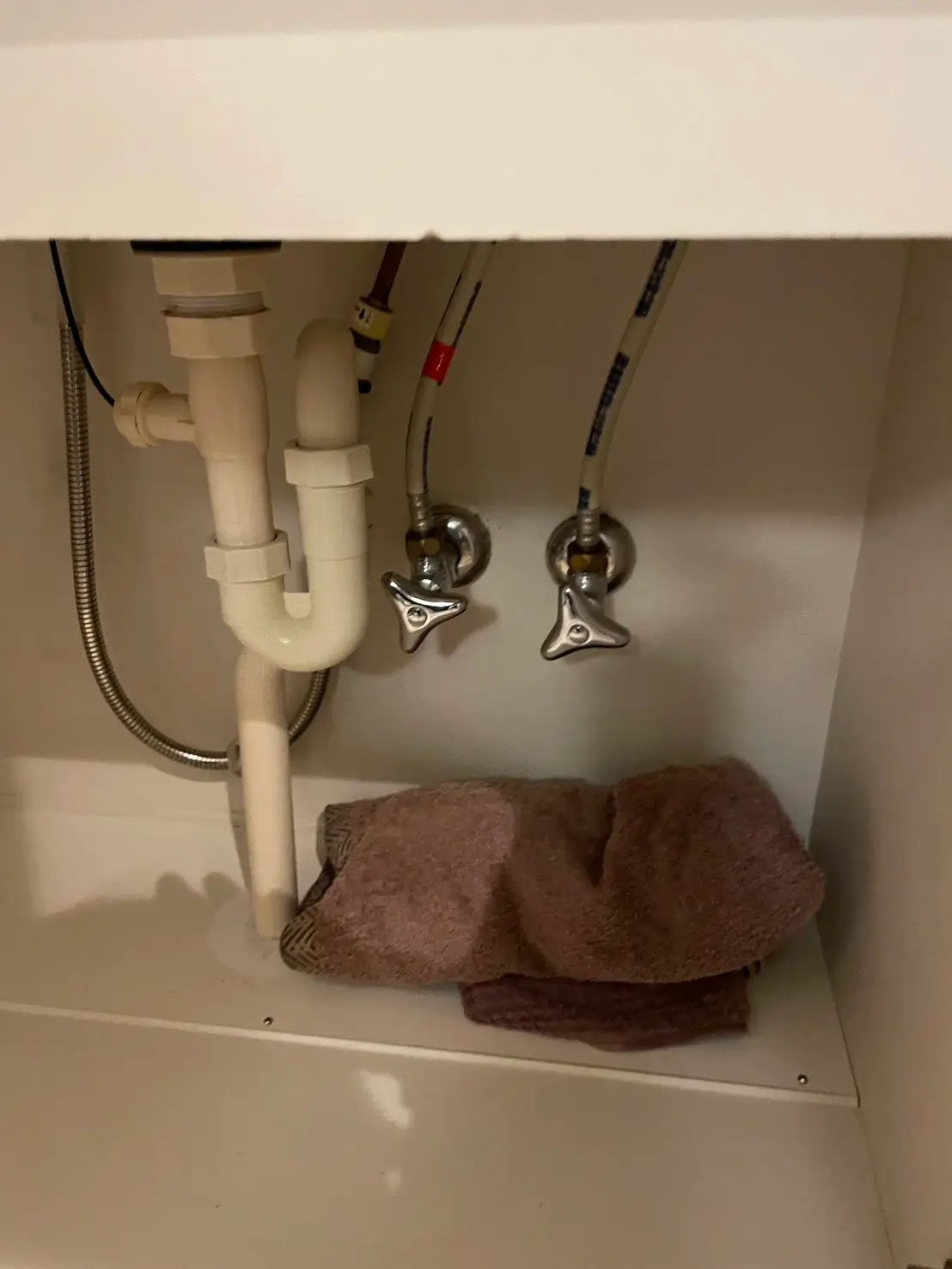 洗面台を使用したあと、下の収納内が濡れていることに気づきました。