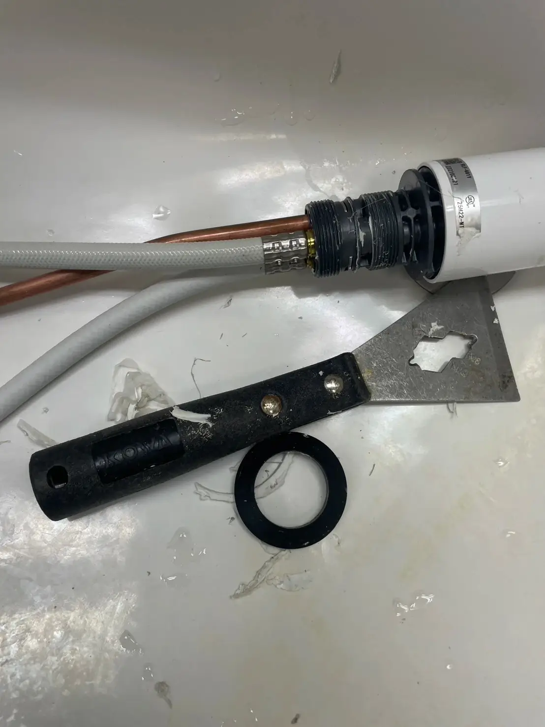 現地では各部品の状態を確認しながら水栓を一度取り外し、適切な位置へ再設置する作業を行いました。