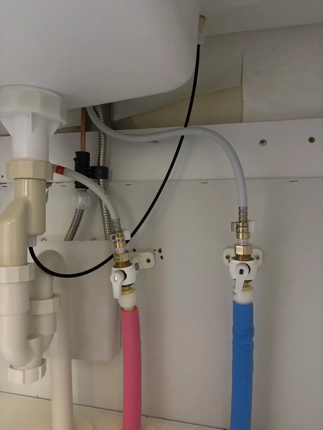 施工中は周囲の水滴をこまめに拭き取りながら進め、床材や収納内に影響が出ないよう注意いたしました。
